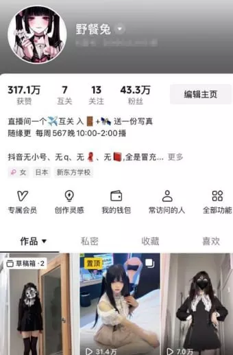 抖音上拥有43万粉丝的清纯LL“野餐兔”,初看似乎是一位纯真无邪的年轻女孩,然而,背后却隐藏着极大的反差。虽然她以“清纯”的形象出现在公众视野中,实际上却涉及高价定制视频的制作,并且有不少大尺度私拍福利流出。